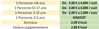 Espace Randonneur + elec (sans voiture) : de 6,5 € à 14,5€/nuit